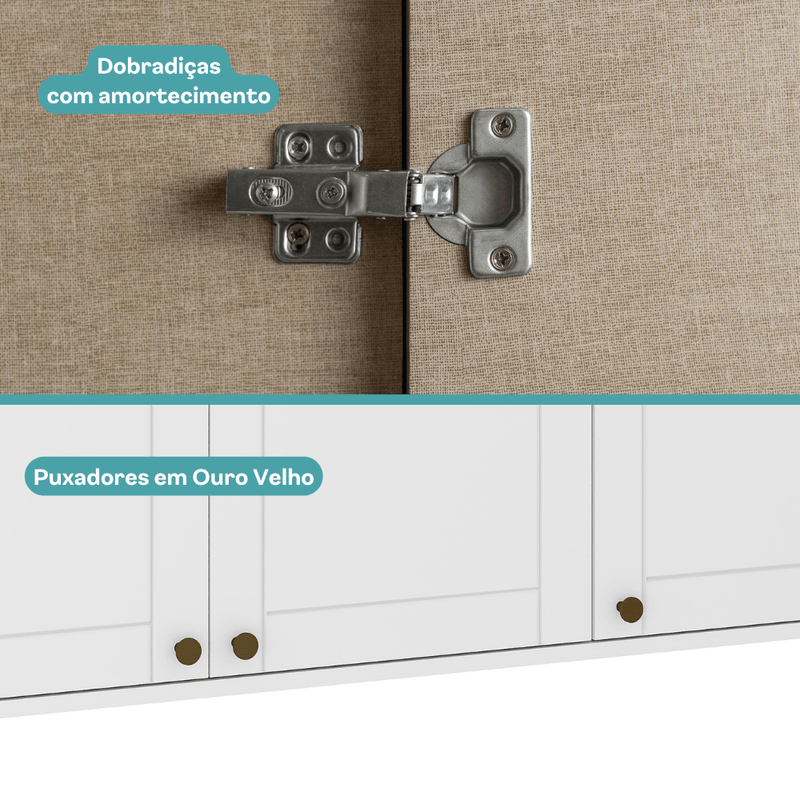 Desenvolvido para valorizar o ambiente e otimizar a organização, o armário aéreo Carraro une funcionalidade e elegância em um design sofisticado e equilibrado. Produzido em MDF de alta qualidade, conta com pintura UV externa e pintura protetiva interna, garantindo durabilidade, resistência e um acabamento impecável. As três portas facilitam o acesso e ampliam o espaço de armazenamento, enquanto as dobradiças com amortecimento e os puxadores em ouro velho proporcionam conforto no uso e um toque elegante ao ambiente.