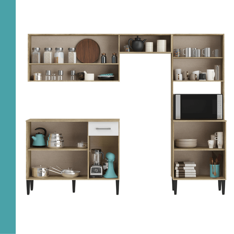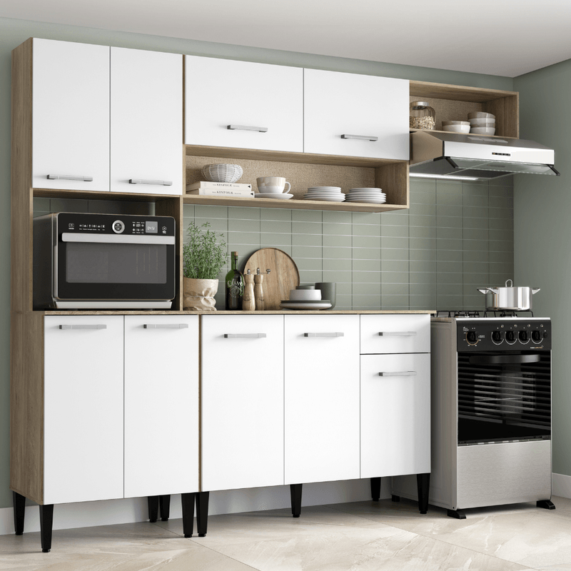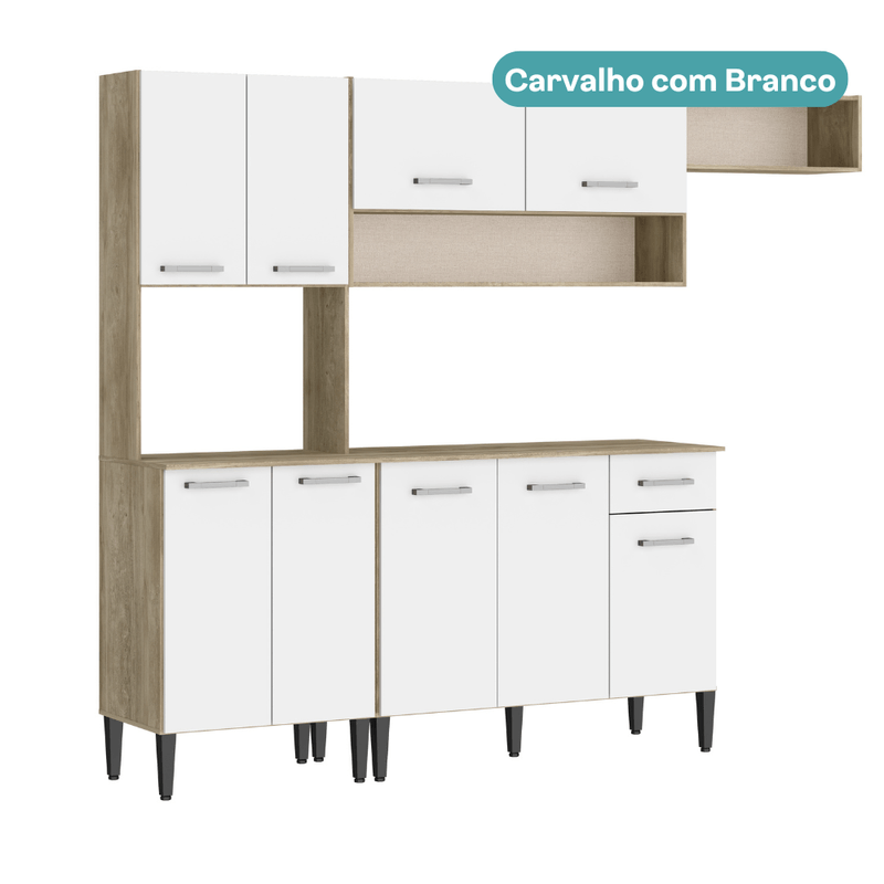 Armário Cozinha Compacta Arizona Smart Carvalho/Branco Carraro