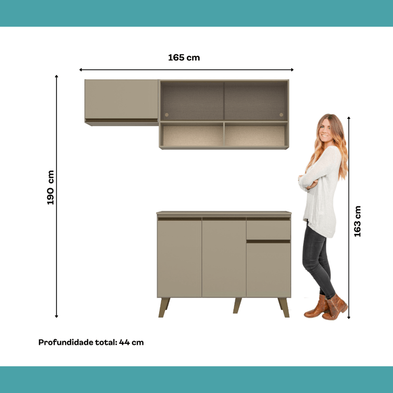 O Kit de Armários de Cozinha Atlanta é a escolha perfeita para quem busca uma cozinha modulada compacta, sem abrir mão de estilo, modernidade e versatilidade. Com design contemporâneo e acabamento exclusivo na cor Amêndoa, essa linha se adapta facilmente a diferentes ambientes, oferecendo modulações inteligentes com excelente aproveitamento de espaço.