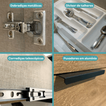 O Conjunto Miami Boost é a escolha perfeita para quem busca a modernidade e organização. Com design contemporâneo, industrial e novaiorquino, faz a sua área gourmet ser o centro das atenções. Fabricada em MDP de alta qualidade, com puxadores de alumínio, corrediças telescópicas e pintura UV interna protetiva contra riscos e manchas, garante amplo espaço de armazenamento, praticidade e resistência para o uso diário.