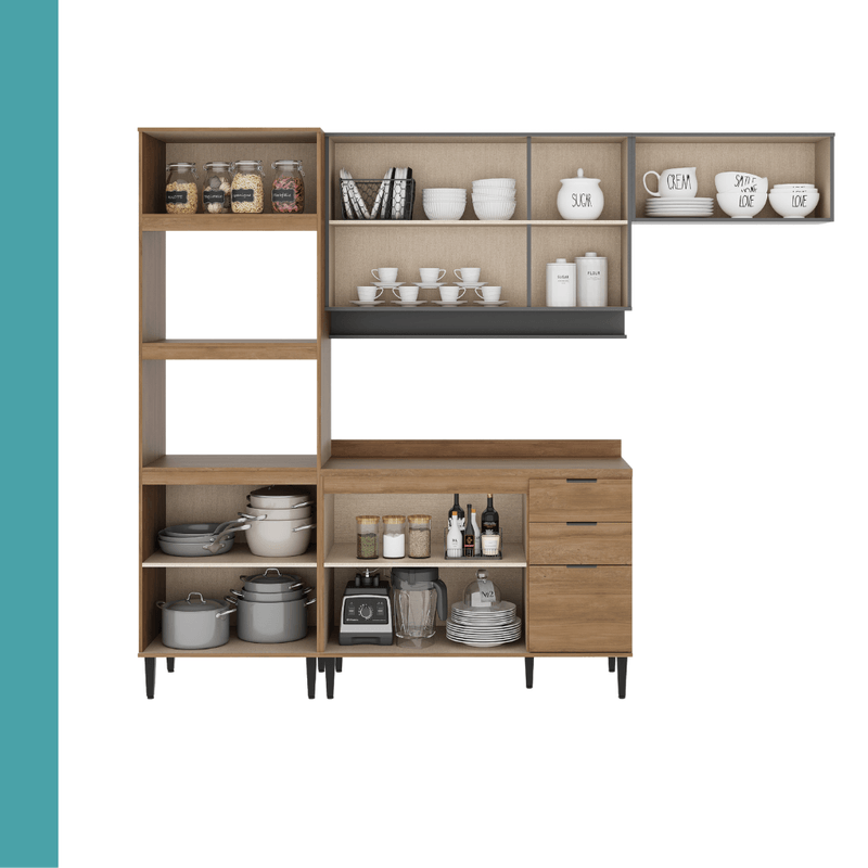 O Conjunto Miami Pop é a escolha perfeita para quem busca a modernidade e organização. Com design contemporâneo, industrial e novaiorquino, faz a sua área gourmet ser o centro das atenções. Fabricada em MDP de alta qualidade, com puxadores de alumínio, corrediças telescópicas e pintura UV interna protetiva contra riscos e manchas, garante amplo espaço de armazenamento, praticidade e resistência para o uso diário.
