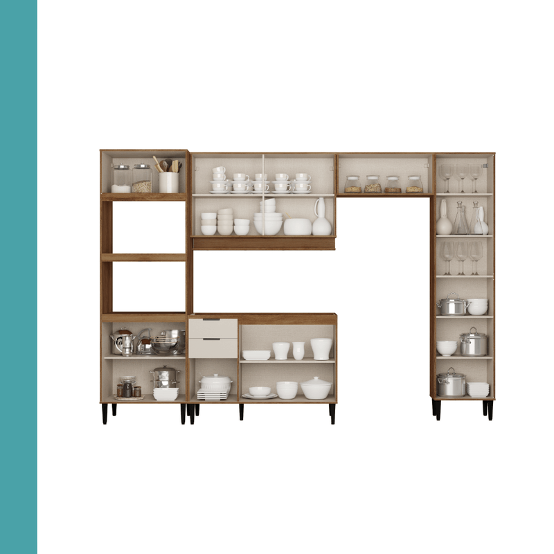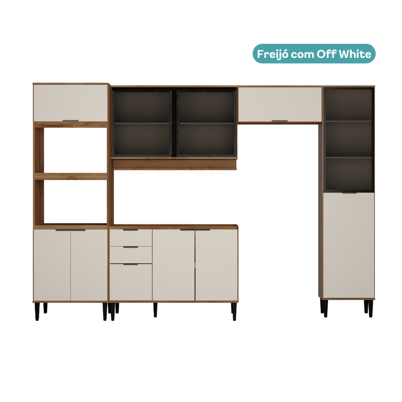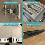 O Conjunto Miami Cool é a escolha perfeita para quem busca a modernidade e organização. Com design contemporâneo, industrial e novaiorquino, faz a sua área gourmet ser o centro das atenções. Fabricada em MDP de alta qualidade, com puxadores de alumínio, corrediças telescópicas e pintura UV interna protetiva contra riscos e manchas, garante amplo espaço de armazenamento, praticidade e resistência para o uso diário.