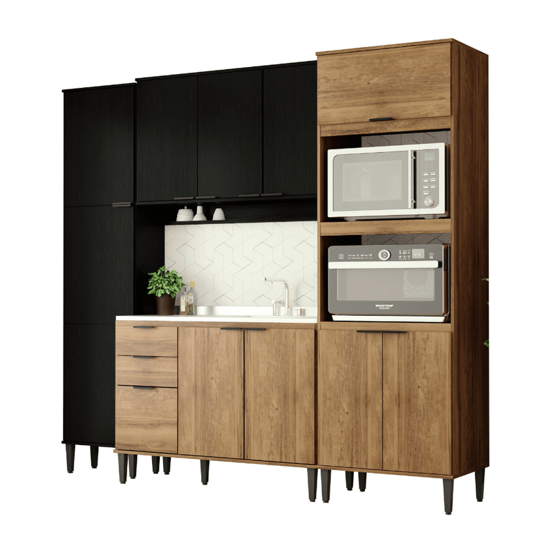 O Conjunto Miami Energy é a escolha perfeita para quem busca a modernidade e organização. Com design contemporâneo, industrial e novaiorquino, faz a sua área gourmet ser o centro das atenções. Fabricada em MDP de alta qualidade, com puxadores de alumínio, corrediças telescópicas e pintura UV interna protetiva contra riscos e manchas, garante amplo espaço de armazenamento, praticidade e resistência para o uso diário.