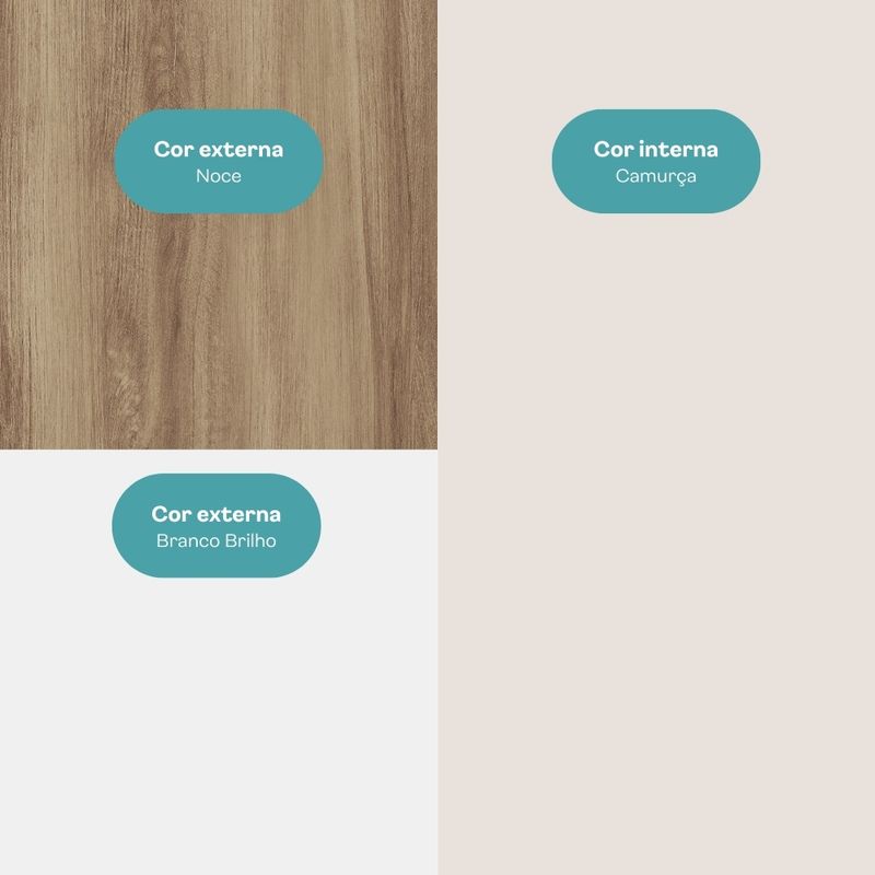 Cabideiro: 2 (alumínio) | Prateleiras: 4 (internas)