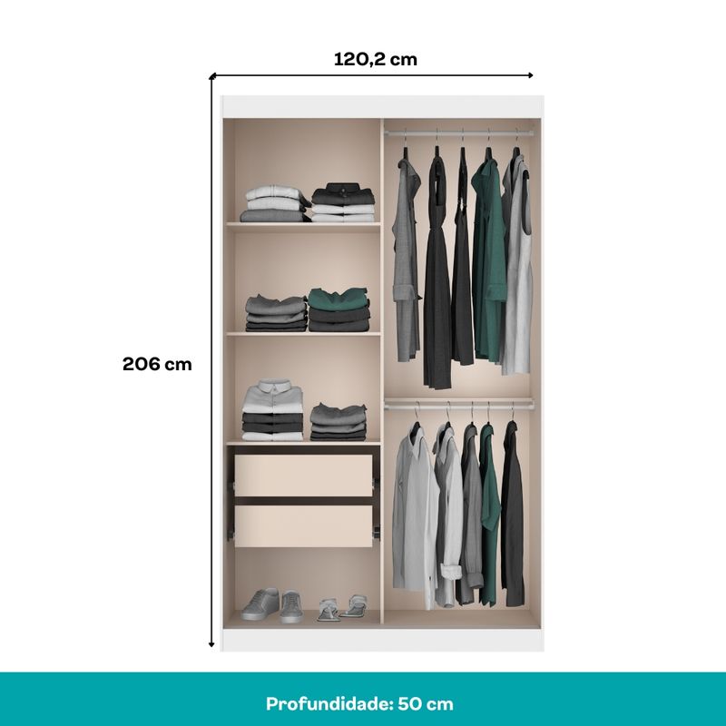 Medidas Totais: Largura: 120,20 cm | Altura: 206 cm | Profundidade: 50 cm