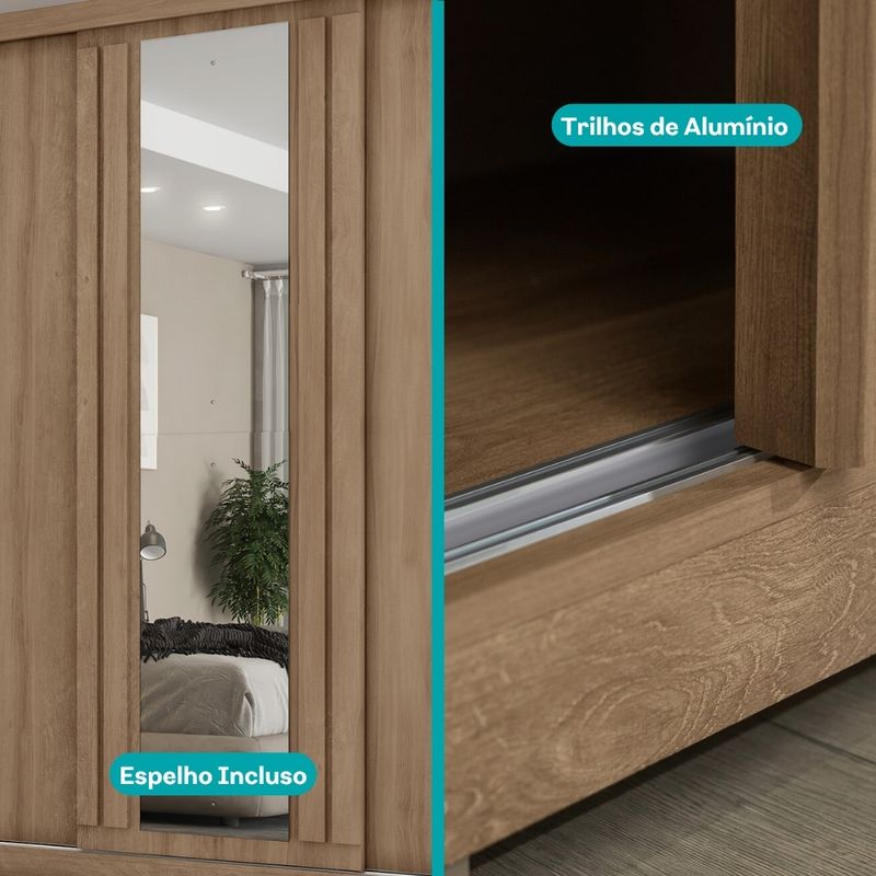 O Guarda-Roupa Doha Casal 3 portas com Gaveteiro e Espelho é a escolha perfeita para quem busca praticidade e estilo em um só móvel. Possui gaveteiro individual que pode ser montado do lado que mais se adequar ao ambiente, garantindo a versatilidade, enquanto o detalhe ripado na porta garante um visual moderno e sofisticado. Nossos produtos são elaborados com matéria-prima de alta qualidade, como MDP e MDF, puxadores de alumínio, pintura UV e revestimento interior com proteção, assegurando durabilidade e resistência aos produtos.