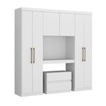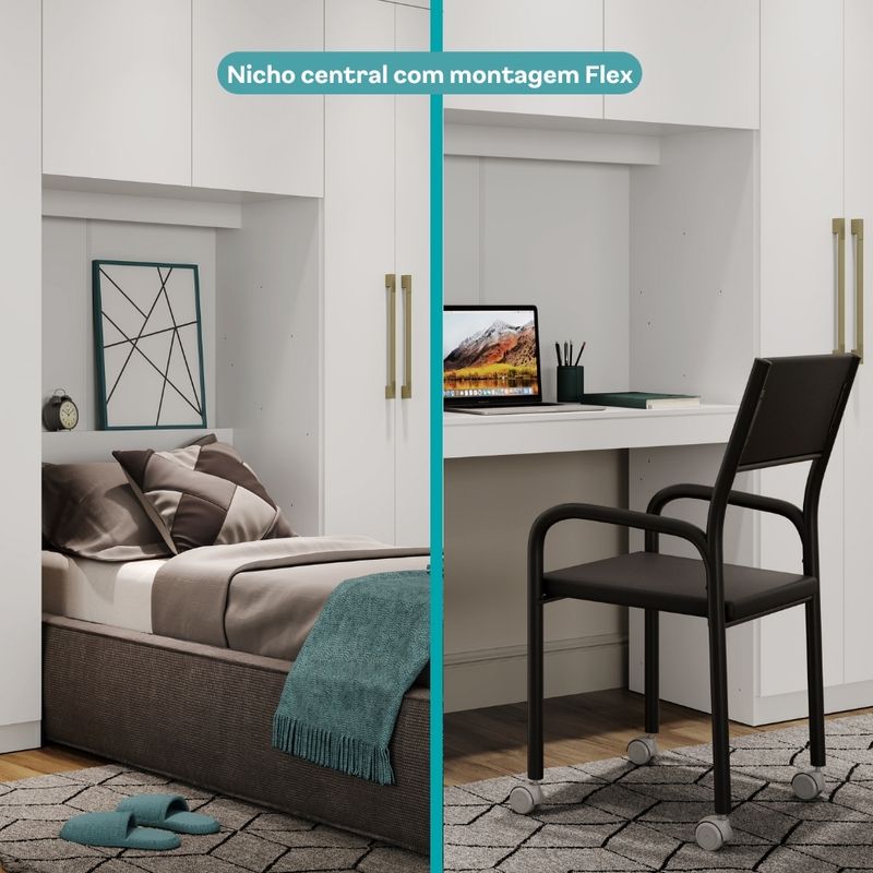 O Roupeiro Porto Casal possui 6 portas de batente e gaveteiro móvel. É um produto chave para diferentes necessidades, já que sua peça central pode ser montada de diversas formas, como: painel de TV, mesa de escrivaninha ou cabeceira de cama de solteiro. Além disso, o gaveteiro solto permite a utilização da peça em vários cantos do ambiente.