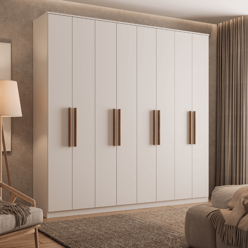 O Guarda-Roupa Austin Casal 8 portas é a escolha perfeita para quem busca praticidade e estilo em um só móvel. Nossos produtos são elaborados com matéria-prima de alta qualidade, como MDP e MDF, puxadores de MDF, pintura UV e revestimento interior com proteção, assegurando durabilidade e resistência aos produtos.