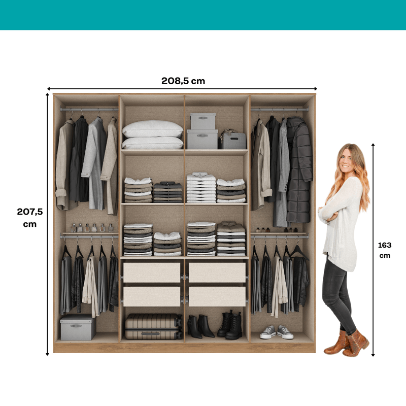 Medidas totais: Largura: 208,5cm | Altura: 207,5cm | Profundidade: 46,5cm