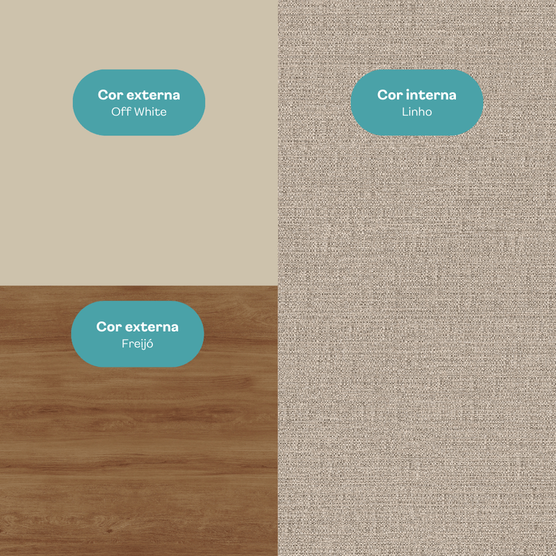 As imagens são ilustrativas. As cores podem variar conforme o monitor e iluminação. Objetos decorativos não acompanham o produto. Acompanha manual de montagem. A Móveis Carraro não realiza o serviço de montagem.