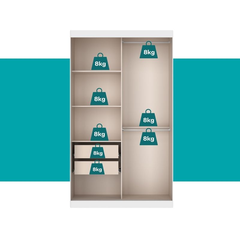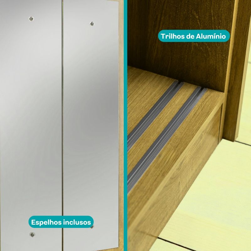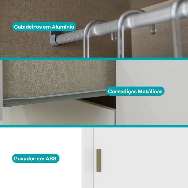 Cabideiro: 2 (alumínio) | Prateleiras: 4 (internas)