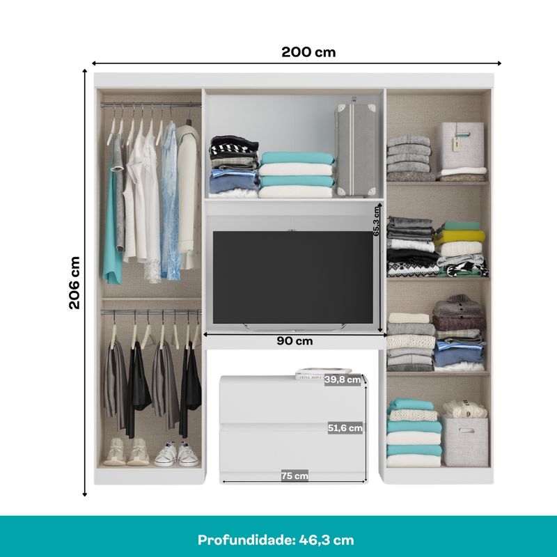 Medidas: Largura: 200 cm | Altura: 206 cm | Profundidade: 46,3 cm