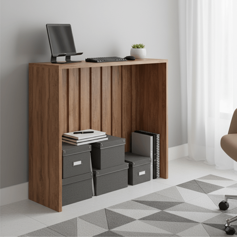 O Organizador para escritório Milla se destaca pela versatilidade e criatividade, permitindo composições modernas e inteligentes dentro de sua empresa ou home office. Multifuncional, ele eleva a organização a um novo patamar, oferecendo espaço ideal para computadores, objetos decorativos ou itens de uso diário, tudo com fácil acesso. Produzido em BP na cor Nogal 15 mm, a combinação entre funcionalidade e estética faz do Organizador Milla uma escolha elegante e prática para ambientes contemporâneos, criando uma atmosfera acolhedora e harmoniosa.