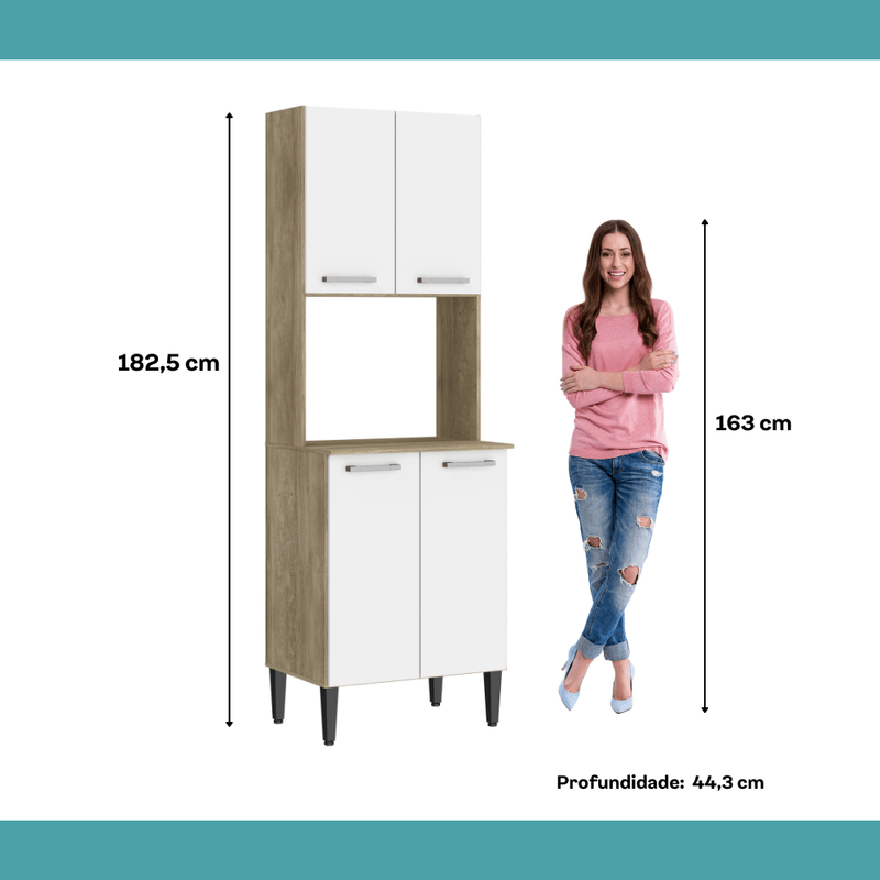 Torre Quente para 1 Forno 4 Portas Arizona Carraro Carvalho com Branco